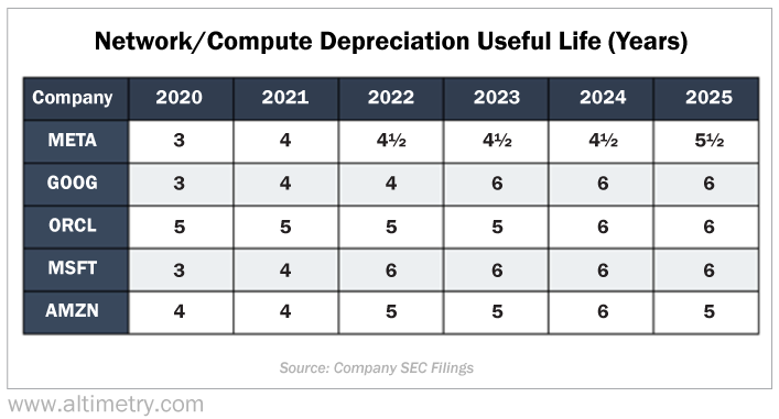 Hyperscalers have increased the useful life of these assets across the board. The average is up from 3.6 years in 2020 to 5.7 years today.
