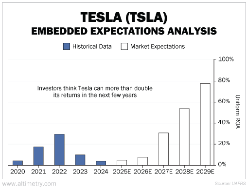 Even if Tesla somehow manages to claw back market share... and records massive profits along the way... we don't see how it could generate these returns.