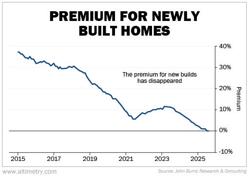 According to Bloomberg, new homes have recently sold for less than existing homes.