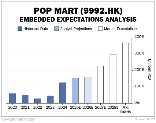 As we said a month ago in Altimetry Authority, our Embedded Expectations Analysis ("EEA") implied a Uniform return on assets ("ROA") of nearly 400% sustained indefinitely.
