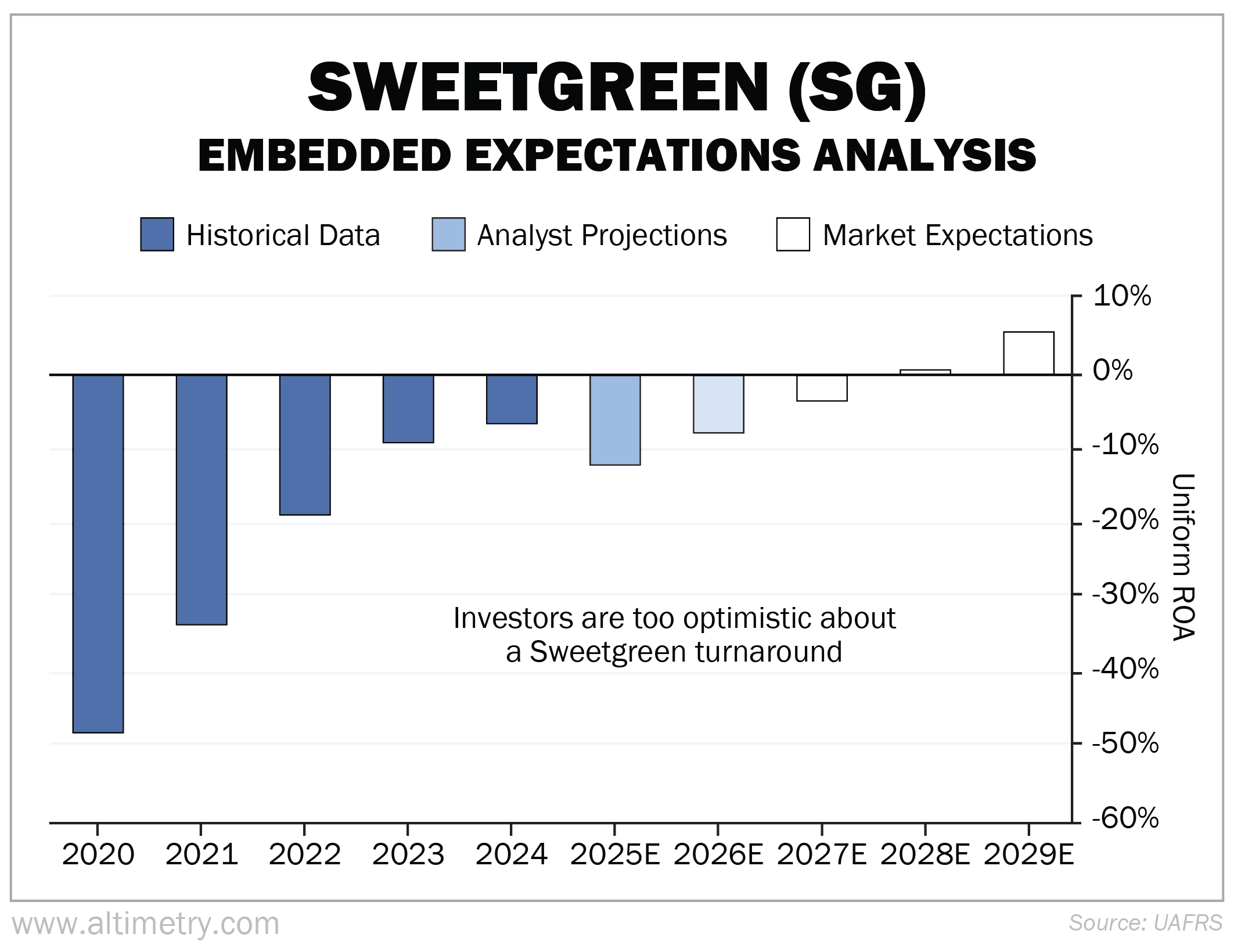 Despite the stock taking a beating, folks think Sweetgreen can right the ship... turning profitable by 2028 and reaching a record 5% Uniform ROA by 2029.