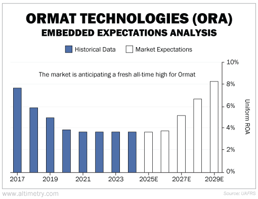Yet, investors are pricing in a strong recovery. They expect Ormat's Uniform ROA to surge to a new high (8.3%). Take a look...