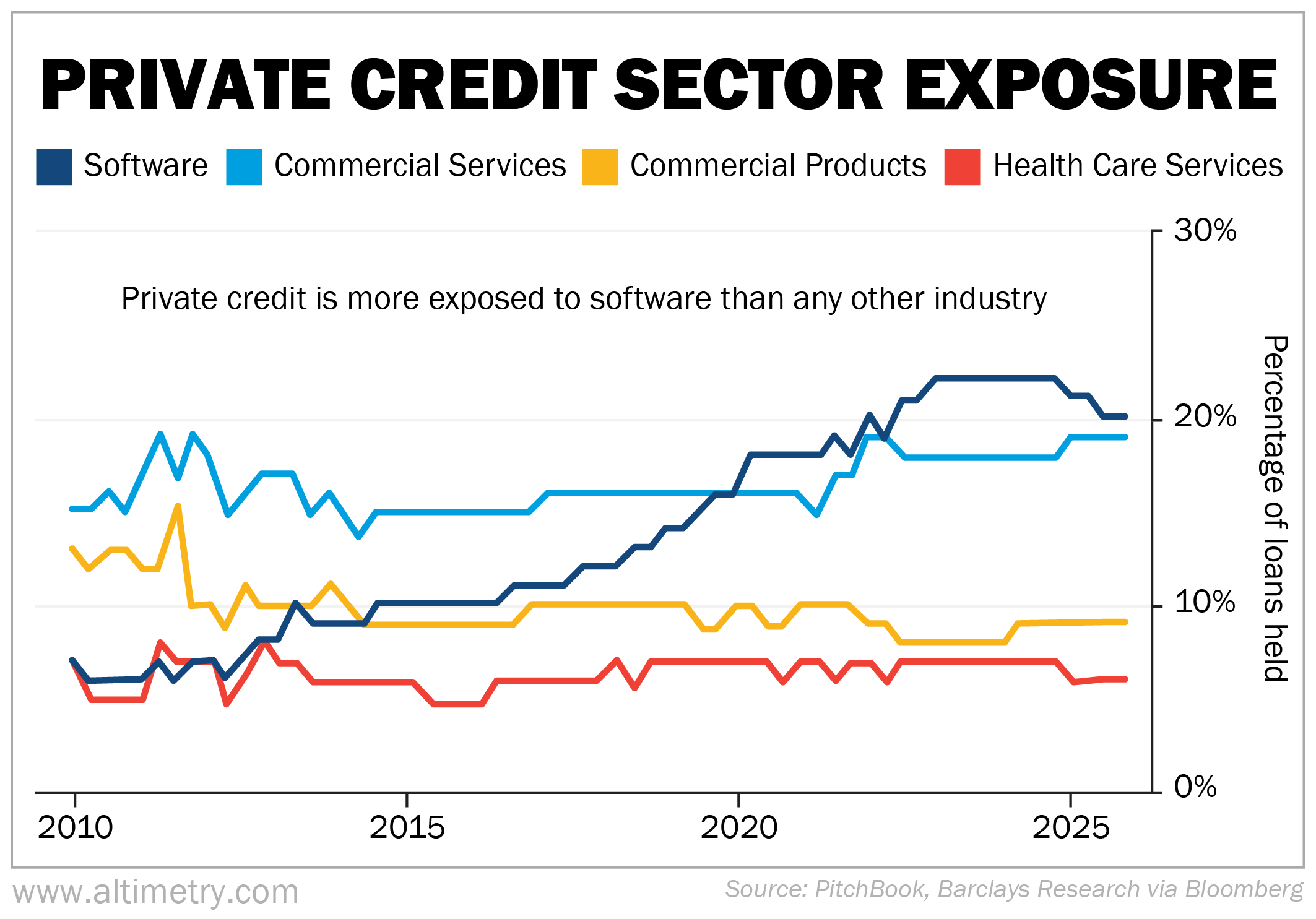 Barclays estimates the sector makes up about 20% of all loans held by private credit funds – making it the industry's biggest sector exposure.