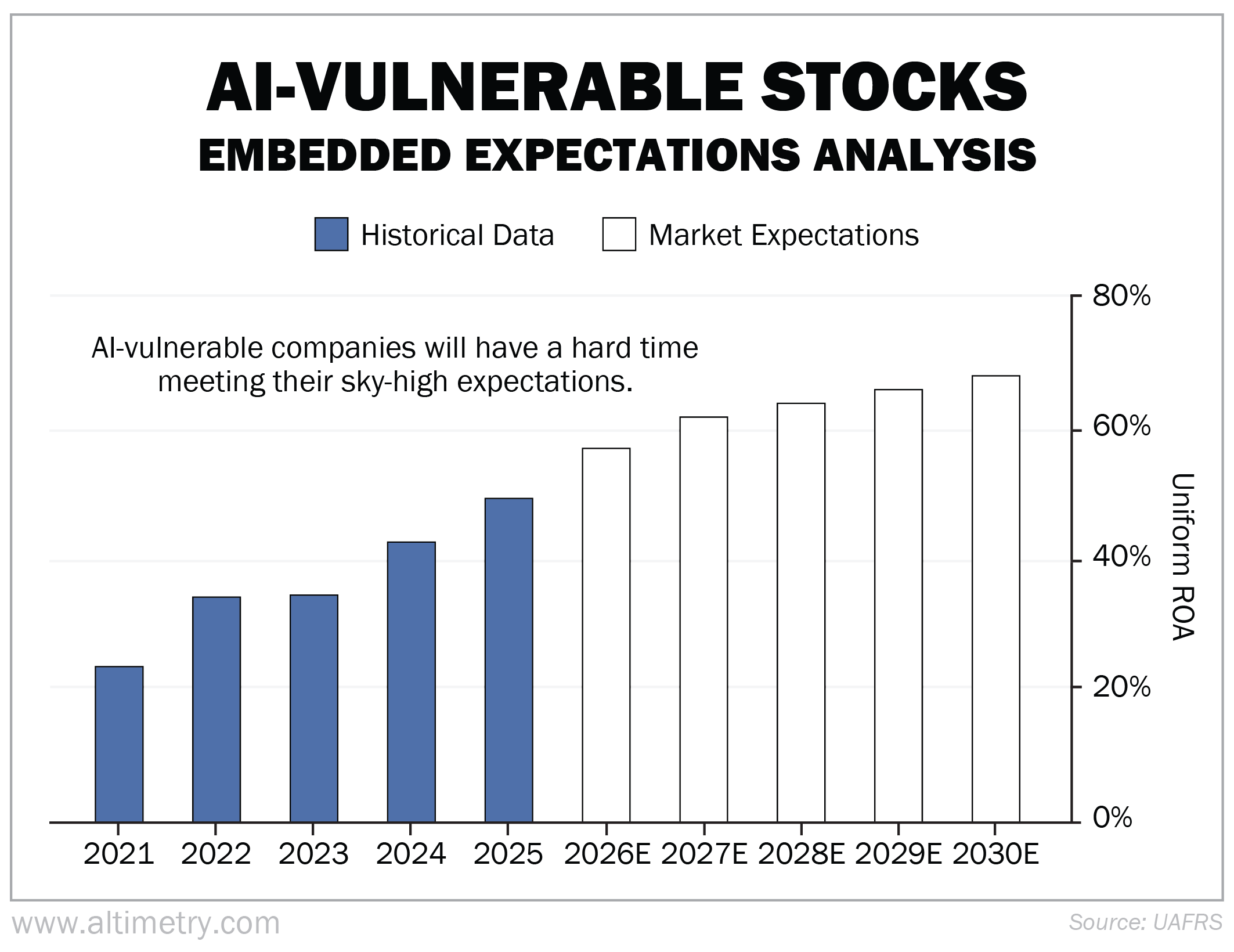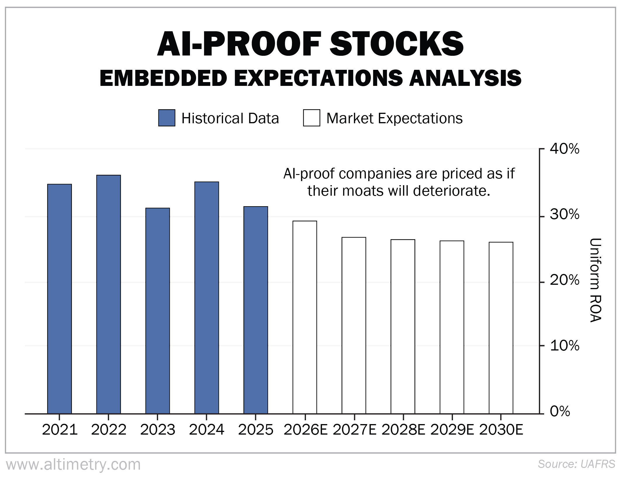 After the recent software sell-off, expectations dipped. Investors expect this basket's Uniform ROA to fall to 26% through the next few years. Take a look...