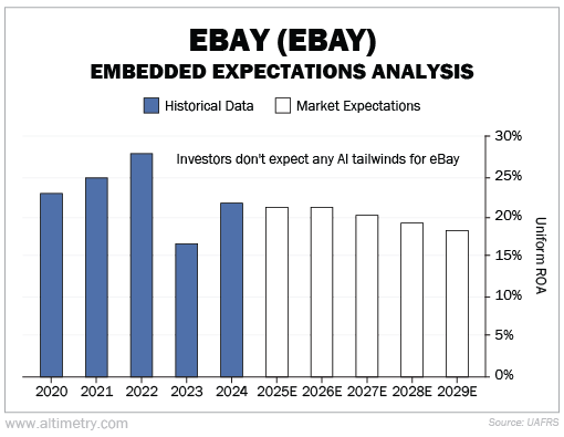 EBay's Uniform return on assets ("ROA") jumped from 17% in 2023 to 22% last year – almost double the 12% corporate average.
