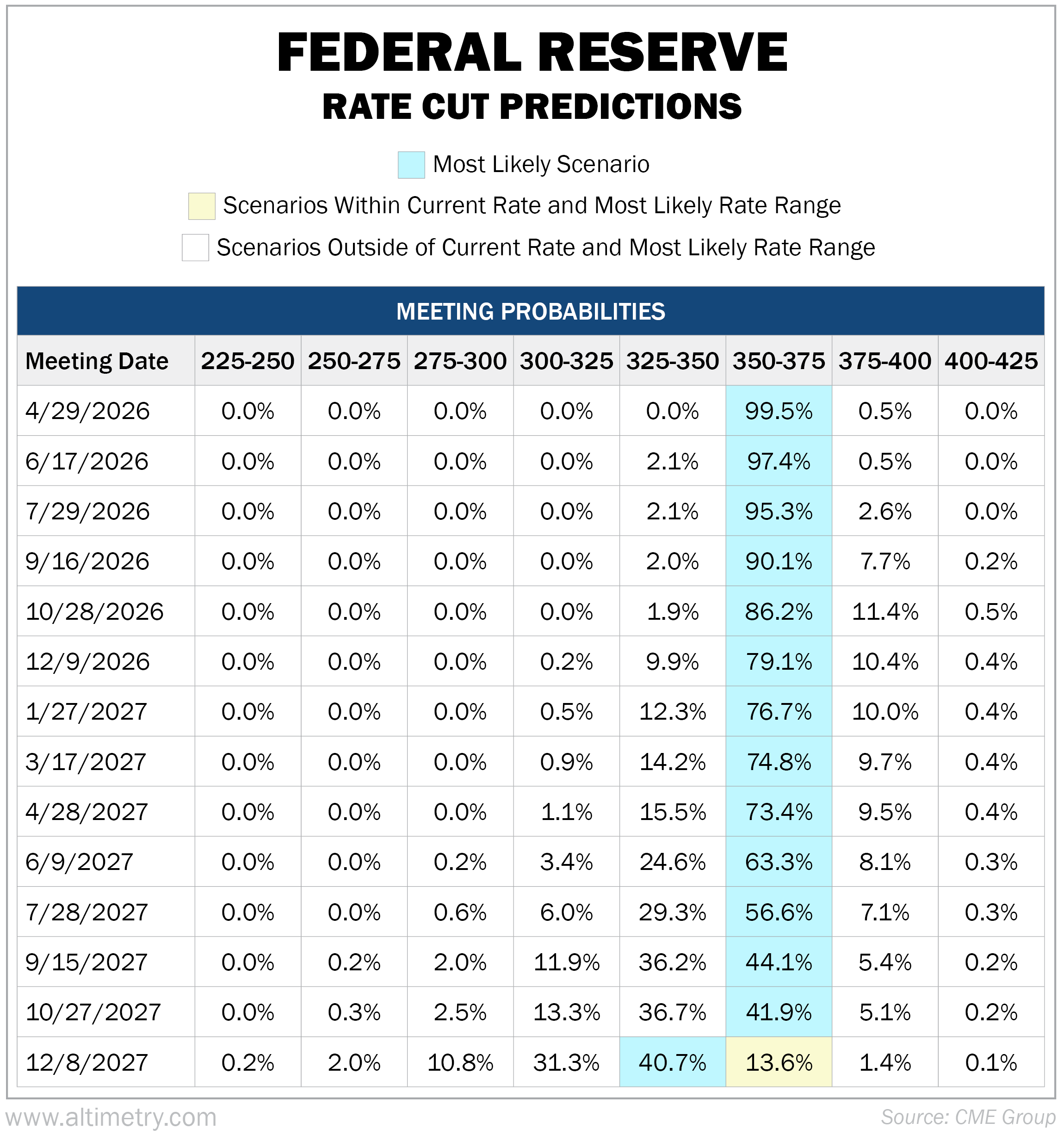 Longtime subscribers know we use the CME FedWatch Tool to check market expectations. It monitors futures contracts to estimate how likely the market thinks interest-rate hikes or cuts are.
